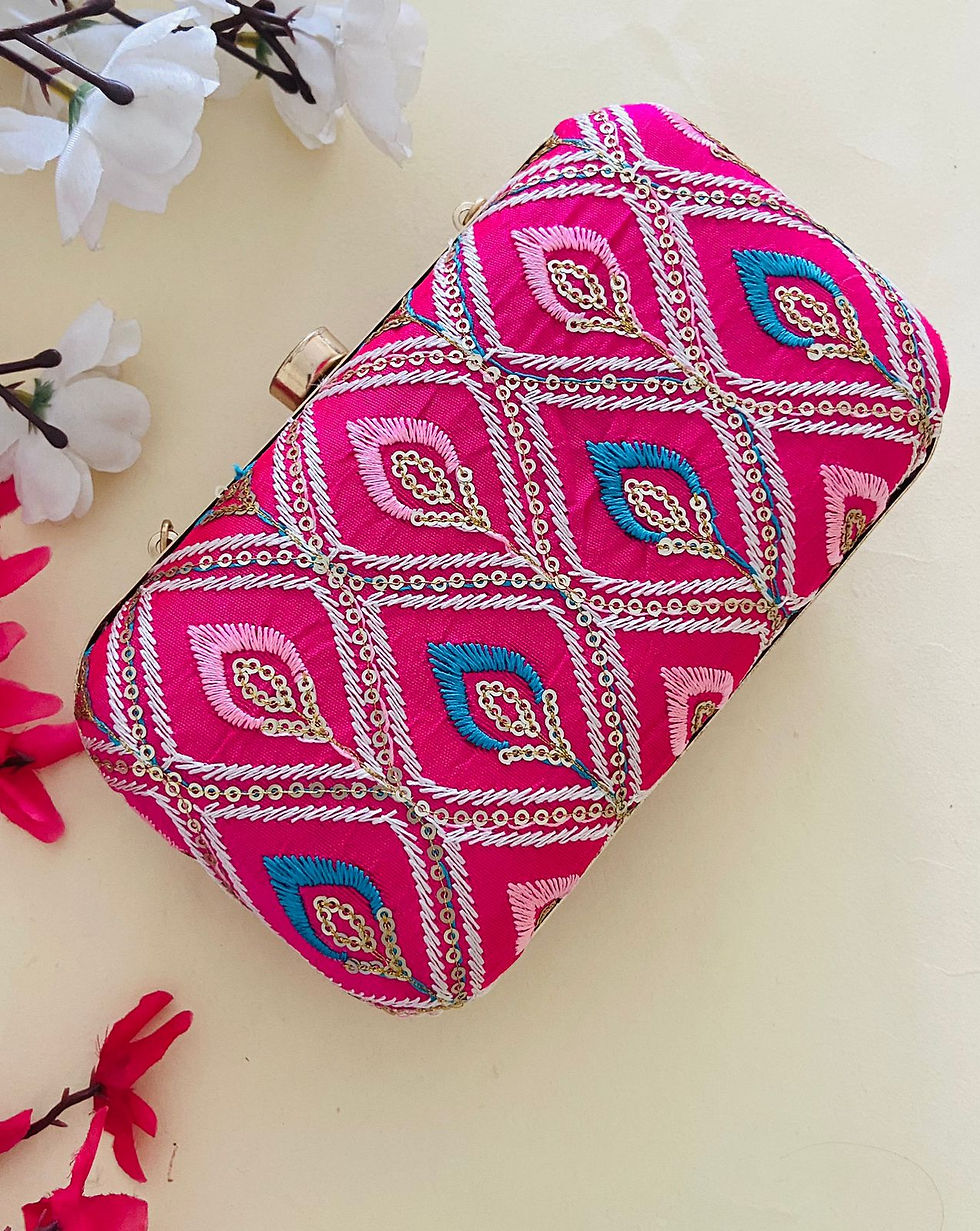 Women Designer Pink Embroidered Handcrafted Evening Clutch Bag