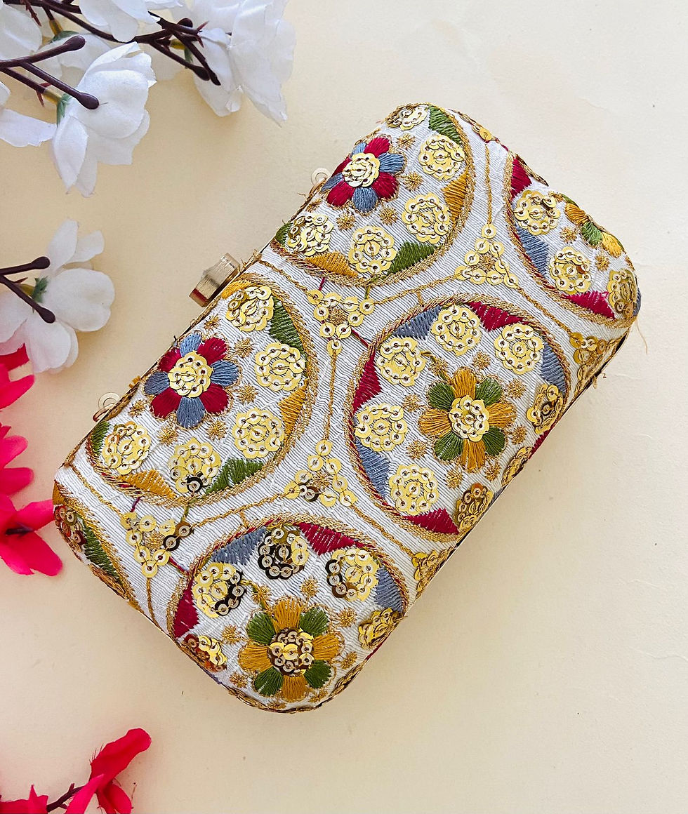 Women Designer Floral Embroidered Handcrafted Evening Clutch Bag