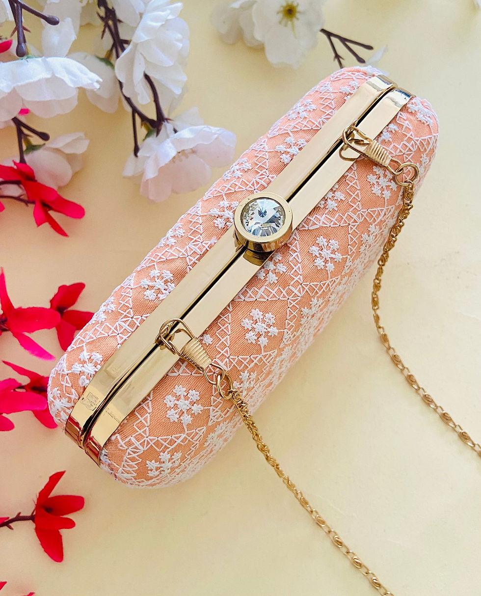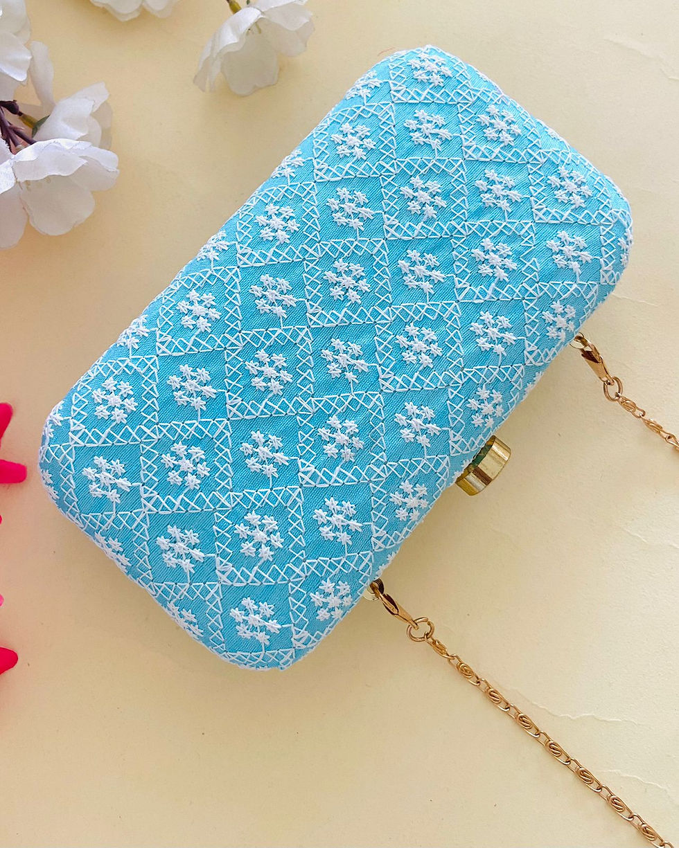 Women’s Chikankari Clutch Bag Elegant Handcrafted Embroidered Purse for