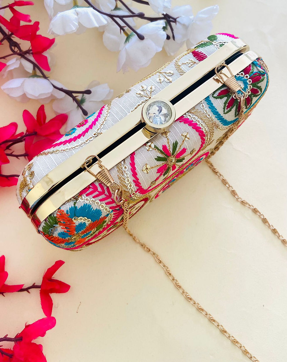 Women’s Chikankari Clutch Bag Elegant Handcrafted Embroidered Purse for Party
