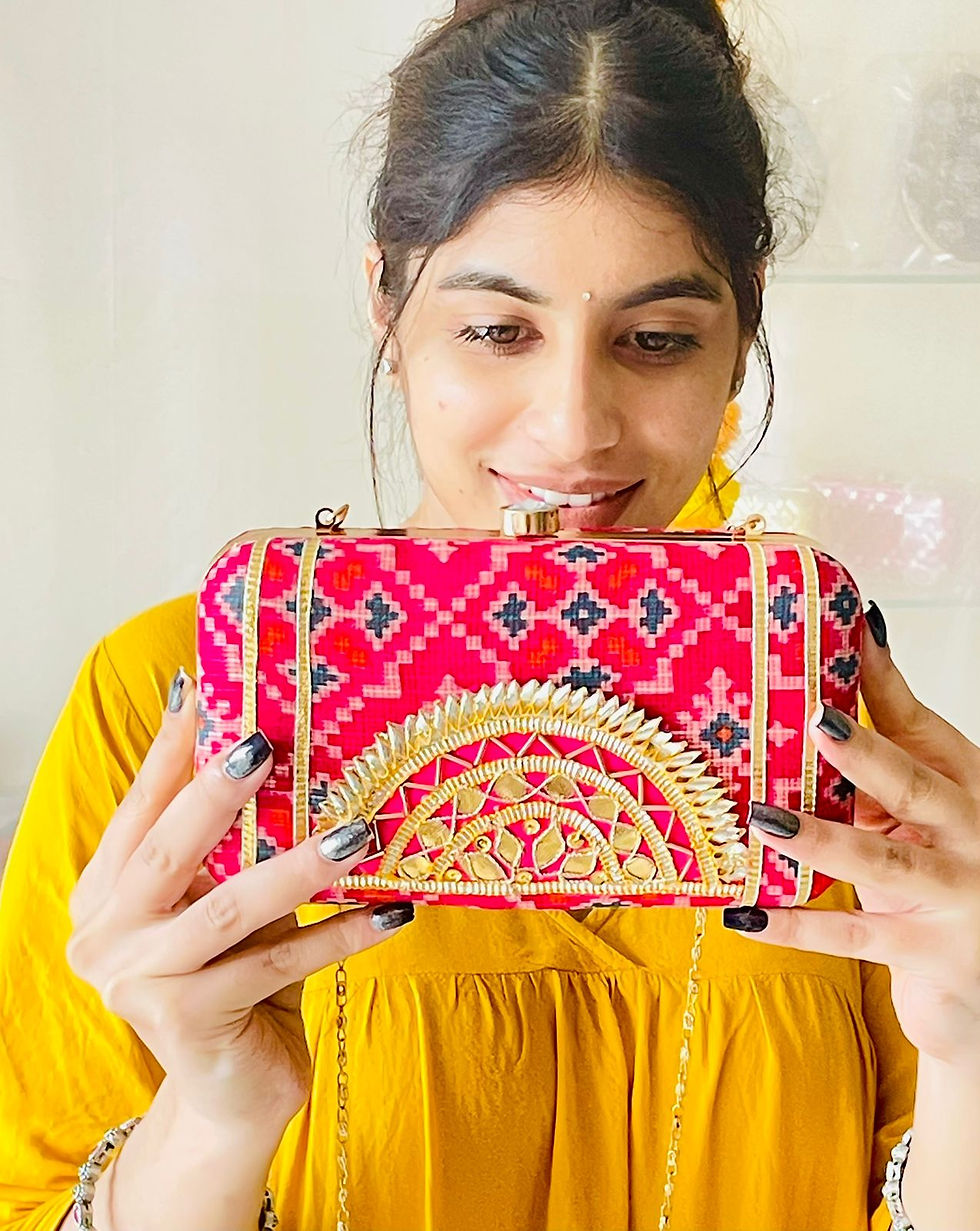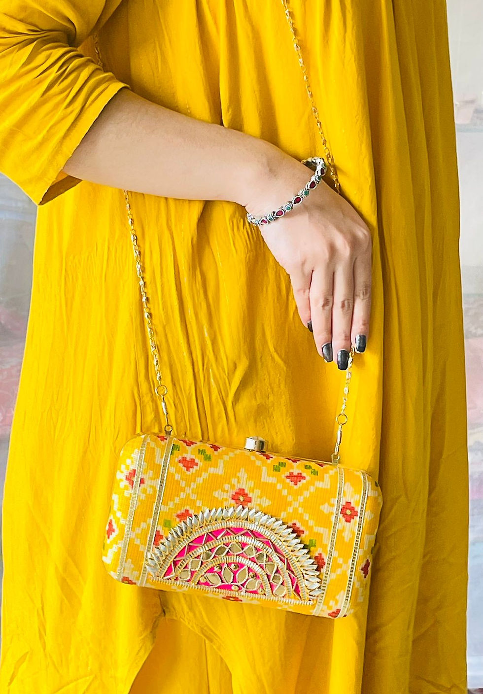 Women’s Gotta Patti Clutch Bag with Sling Chain, Ethnic Handcrafted Party bag